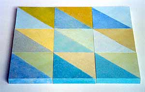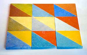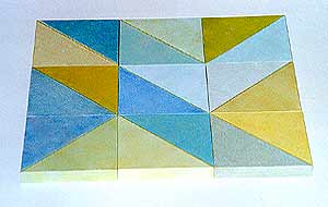 9 gleichgroße Teile aus MDF-Material werden mit weißer