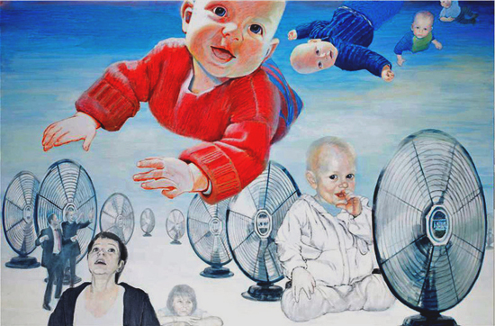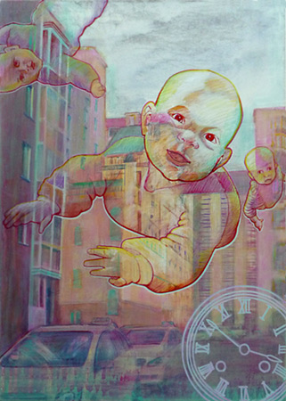 von Bassen: "Flying kids" 2008, Acryl auf Leinwand,